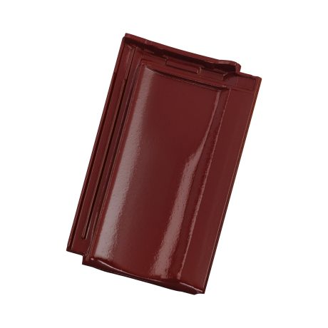 Dachówka ceramiczna w kolorze kasztanowej glazury o jednym szerokim wyżłobieniu nadającym połaci dachu spokojnego i harmonijnego charakteru